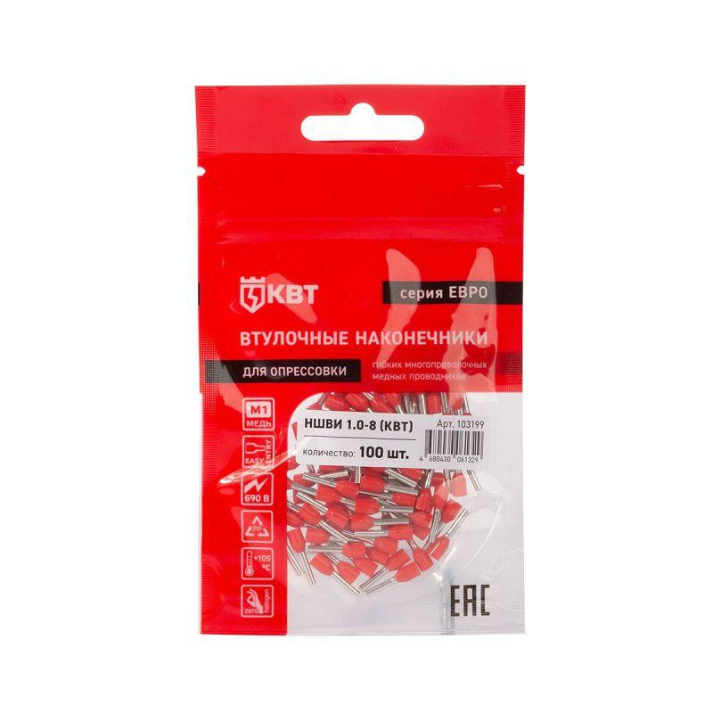 Наконечник штыревой втулочный изолированный НШВИ(2) 1.0-8 ЕВРО красн. КВТ 103245 КВТ