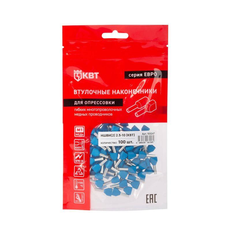 Наконечник штыревой втулочный изолированный НШВИ(2) 2.5-10 ЕВРО син. КВТ 103247 КВТ