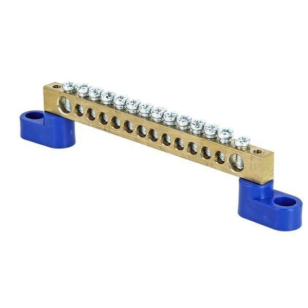 Шина нулевая N 6х9 14 отверстий 2 синих угловых изолятора латунь розн. стикер PROxima EKF sn0-63-14-2-r EKF