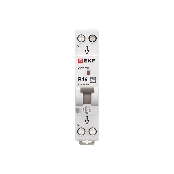 Выключатель автоматический дифференциального тока 1мод. B 16А 30мА тип AC 6кА АВДТ-63М электрон. PROxima EKF DA63M-16B-30 EKF