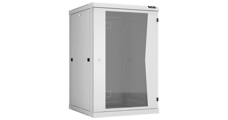Шкаф настенный разборный 19дюйм 18U стекл. дверь Ш600хВ904хГ600мм 2 пары монтажных направляющих сер. TLK TWC-186060-R-G-GY
