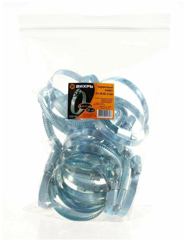 Хомут металлический червячный 40-60 9мм (уп.25шт) Вихрь 73/9/1/25 Вихрь