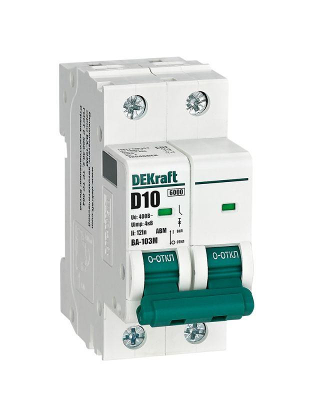 Выключатель автоматический модульный 2п D 10А 6кА ВА-103M без теплозащиты DEKraft 12546DEK