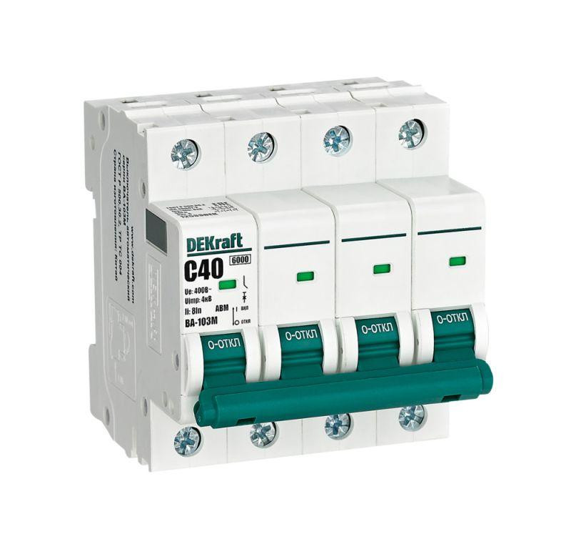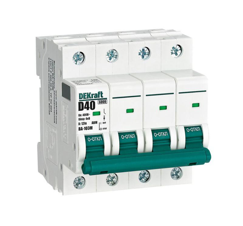 Выключатель автоматический модульный 4п D 40А 6кА ВА-103M без теплозащиты DEKraft 12569DEK