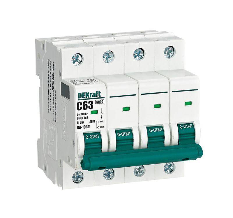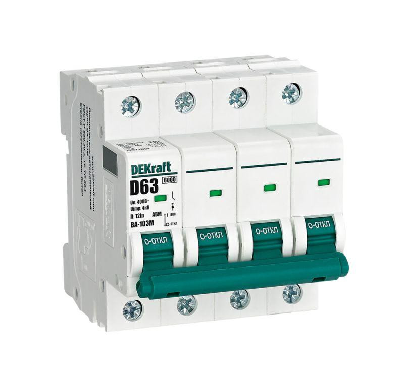Выключатель автоматический модульный 4п D 63А 6кА ВА-103M без теплозащиты DEKraft 12571DEK