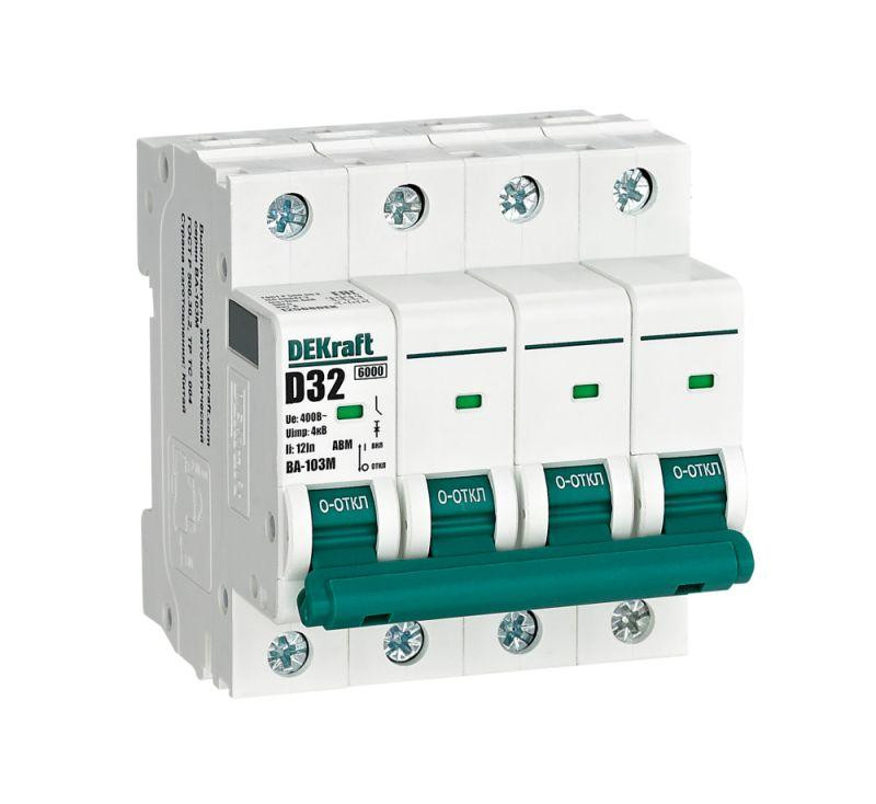Выключатель автоматический модульный 4п D 32А 6кА ВА-103M без теплозащиты DEKraft 12568DEK