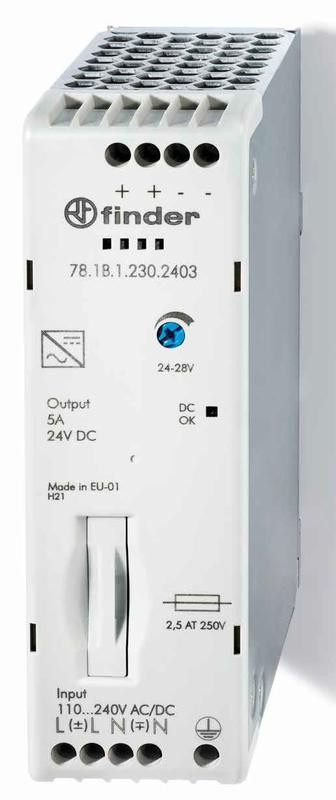 Источник питания импульсный вход 120...240В AC/220В DC / выход 24В DC 120Вт компактный IP20 FINDER 781B12302403 FINDER