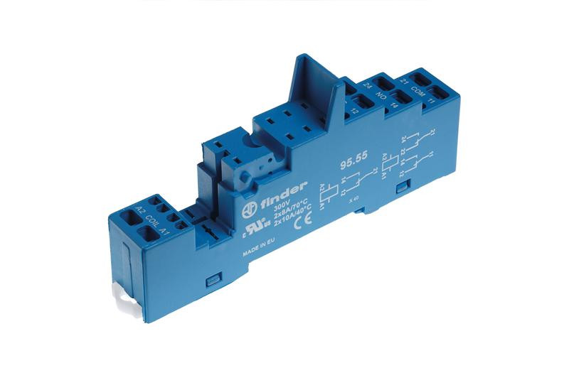 Розетка с безвинт. клеммами (пружинный зажим) для реле 40.51 40.52 40.61 40.62 модули 99.02 86.03 в комплекте металлич. клипса 095.71 син. FINDER 9555SMA FINDER
