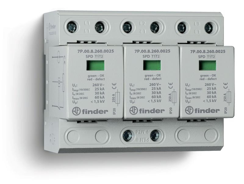 Устройство защиты от импульсных перенапряжений УЗИП тип 1+2 (3 варистор/искровый разрядник) модульный 108мм IP20 FINDER 7P0382601025 FINDER