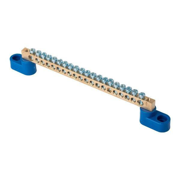 Шина нулевая N 6х9 20 отвер. латунь 2 син. угловых изолятора розн. стикер EKF sn0-2-63-20-r EKF