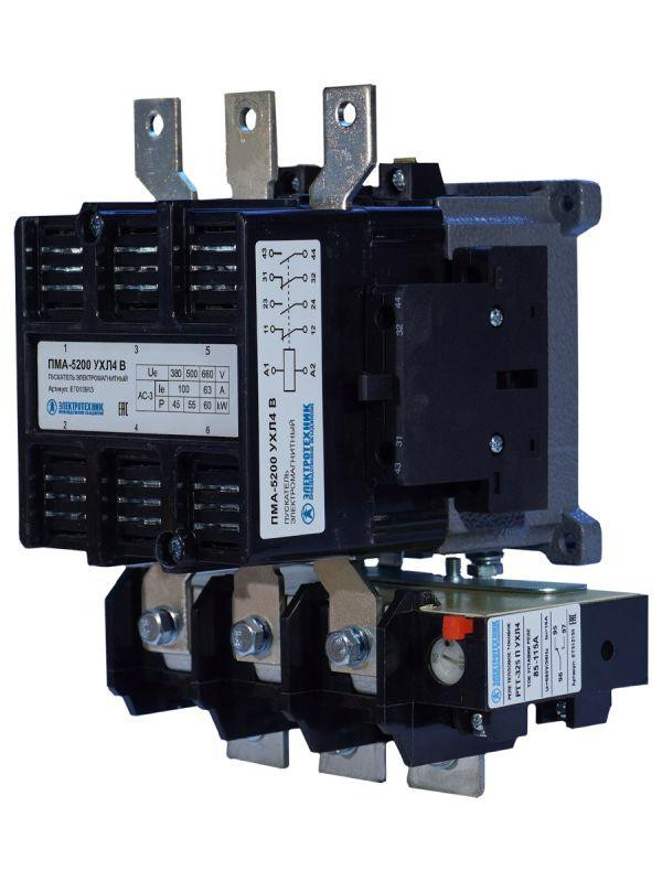 Пускатель электромагнитный ПМА-5200 УХЛ4 В 100А 220В 2НО+2НЗ IP00 нереверсивный с реле РТТ-325 85-115А Электротехник ET010913 Электротехник
