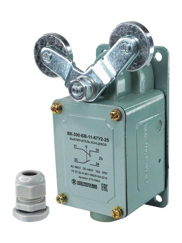 Выключатель концевой ВК-300-БВ-11-67У2-25 V-образный рычаг с роликом на каждом плече с сальником ход вправо и влево без самовозврата ступень 2- 51мм IP67 Электротехник ET515949 Электротехник