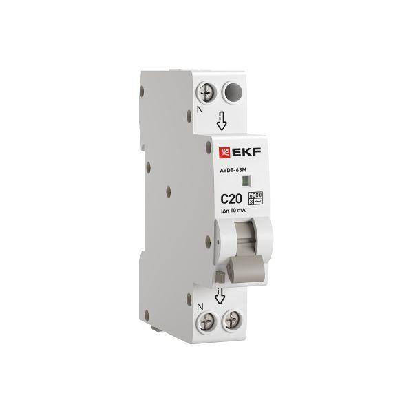 Выключатель автоматический дифференциального тока 1мод. C 20А 10мА тип AC 6кА АВДТ-63М электрон. PROxima EKF DA63M-20-10 EKF