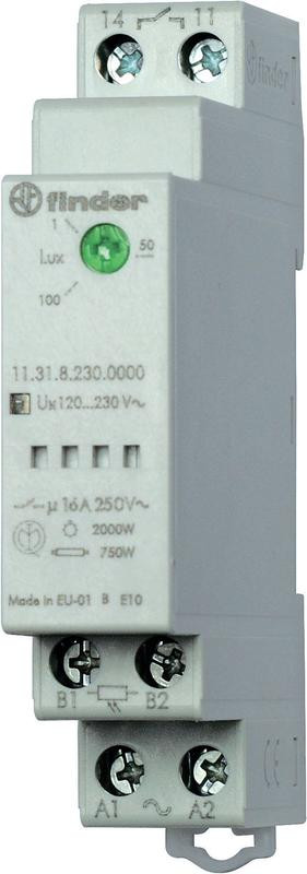 Фотореле модульное с фотоэлементом 011.02 монтаж на рейку 35мм 1NO 16А 24В AC/DC 1…100люкс 17.5мм фотореле IP20/фотоэлемент IP54 FINDER 113100240000 FINDER