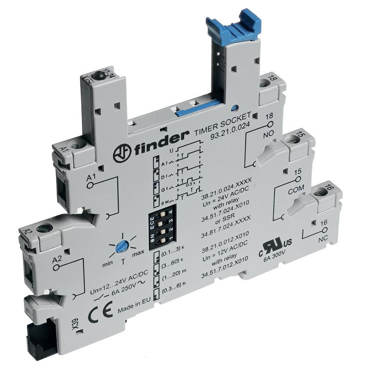 Розетка с винт. клеммами (с зажимной клетью) для реле 34 серии встроенный таймер мультифункциональн. (AI DI GI SW) регулировка времени 0.1с…6ч 24В AC/DC в комплекте пластик. клипса опции: LED FINDER 93210024 FINDER