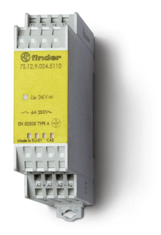 Реле безопасности электромеханическое модульное 6А 24В DC 1NO+1NC AgNi+Au IP54 22.5мм с принудит. управлен. контактами FINDER 7S1290245110 FINDER