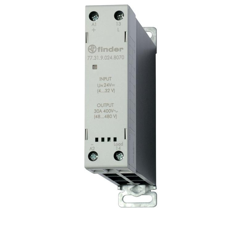 Реле модульное твердотельное выход 30А (60…440В AC) 24В DC функция "Включ. при пересечении нуля" 22.5мм клем. реле IP20 FINDER 773190248050 FINDER