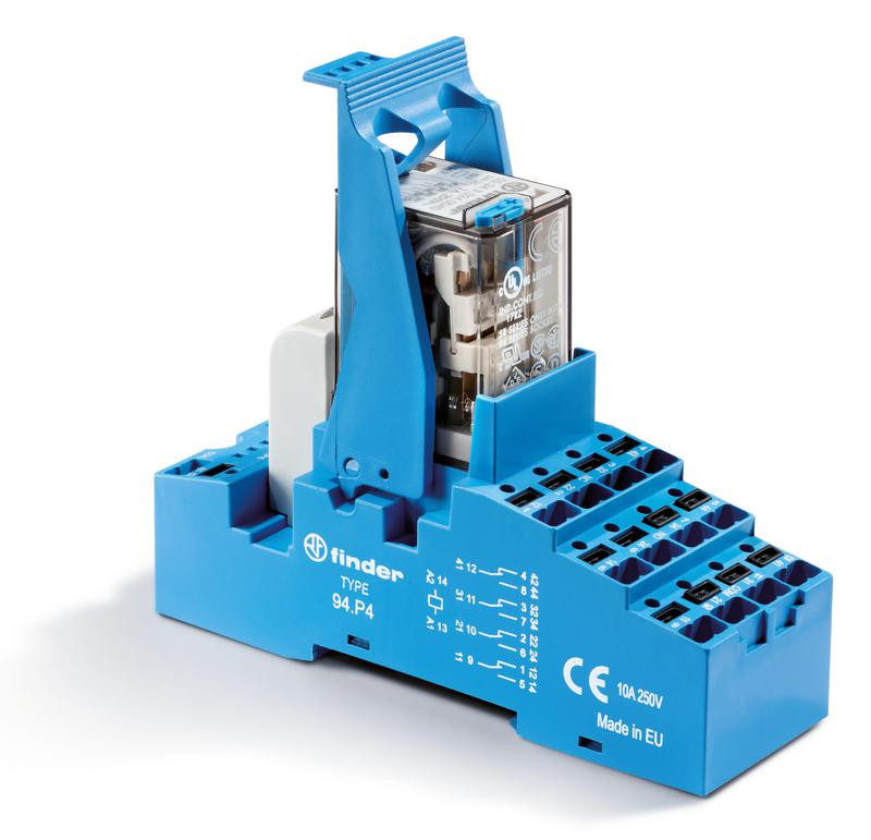 Модуль интерфейсный (сборка 55.34.9.024.0040 + 99.02.9.024.99 + 94.04SPA) электромеханич. реле 4CO 7А AgNi 24В DC IP20 винт. клеммы пластик. клипса LED + диод FINDER 583490240050SPA FINDER