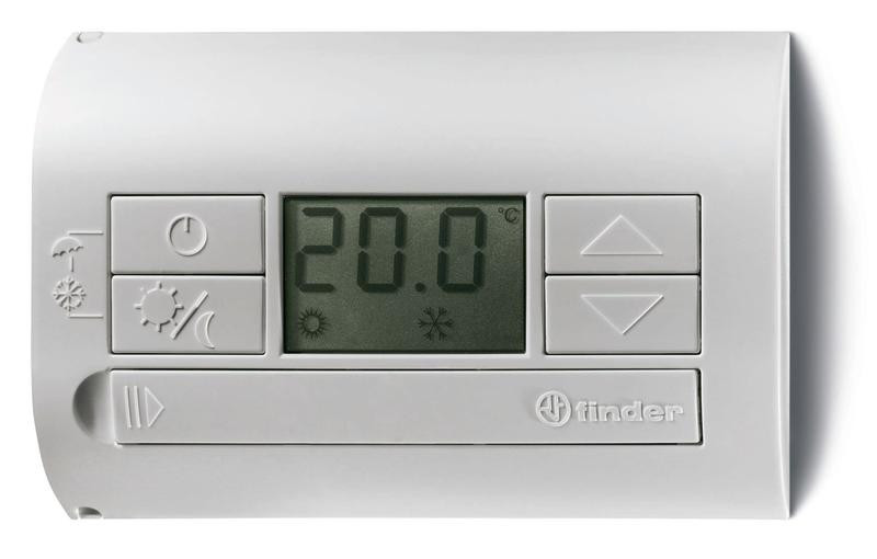 Термостат комнатный 3В DC 1СО 5А монтаж на стену кнопки ВКЛ/ВЫКЛ ЛЕТО/ЗИМА дисплей бел. FINDER 1T3190030000 FINDER