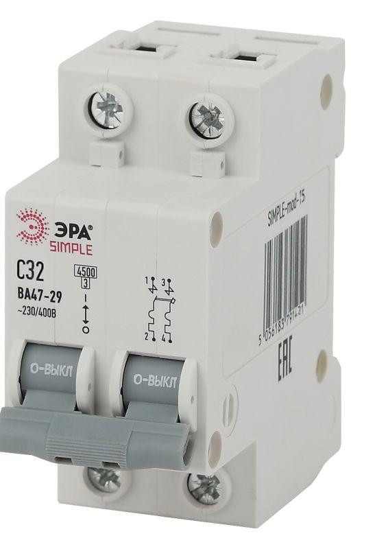 Выключатель автоматический модульный 2п C 32А 4.5кА ВА 47-29 SIMPLE-mod-15 ЭРА Б0039232 Эра