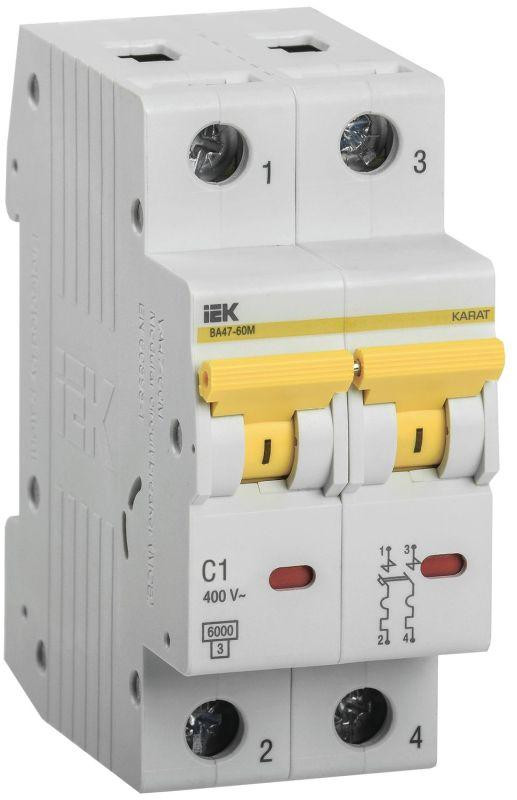 Выключатель автоматический модульный 2п C 1А 6кА ВА47-60M KARAT IEK MVA31-2-001-C IEK