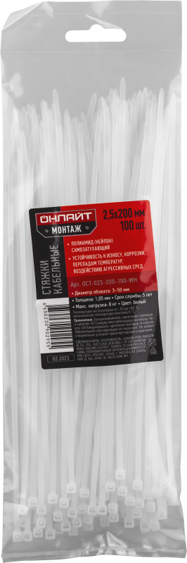 Хомут 90 295 OCT-025-200-100-WH (уп.100шт) ОНЛАЙТ 90295 ОНЛАЙТ