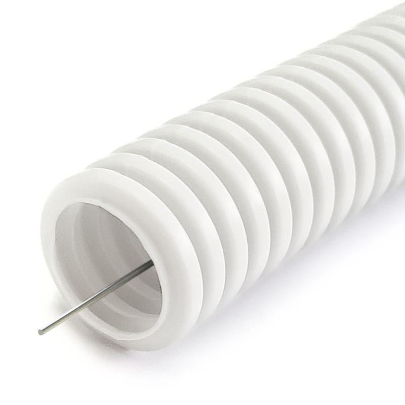 Труба гофрированная ПЛЛ легкая d20мм с протяжкой безгалоген. (HF) (НГ) бел. (уп.100м) Промрукав PR02.0215