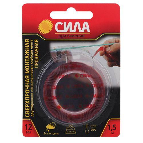 Лента клейкая сверхпрочная монтажная SDST-1215TR двустор. пеноакрил.12мм х 1.5м прозр. СИЛА Б0046371