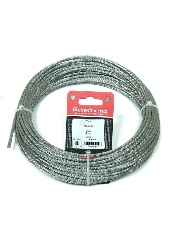 Трос стальной 4.0мм DIN 3055 цинк (уп.20м) подвес СТРОЙМЕТИЗ 4140070 СТРОЙМЕТИЗ