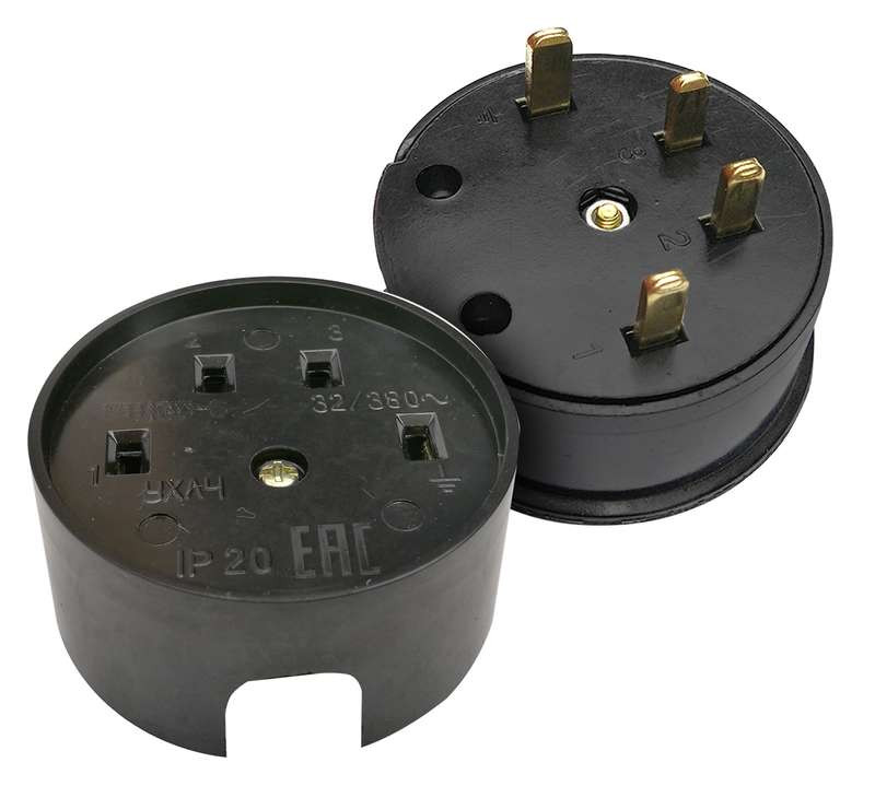Разъем РШ-ВШ 32А 250В карболитовый ОП черн. 9114 IN HOME 4690612010199 IN HOME