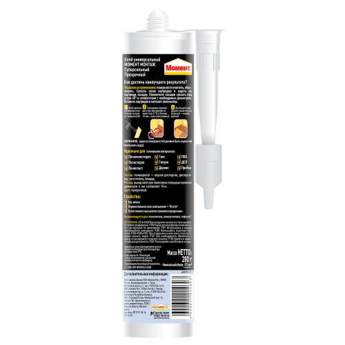 Клей монтажный "Момент монтаж суперсильный МВп-70" 280г прозр. Момент Б0022979