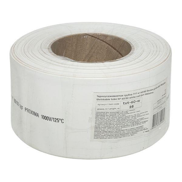 Трубка термоусадочная ТУТ нг 60/30 бел. PROxima (уп.25м) EKF tut-60-w EKF