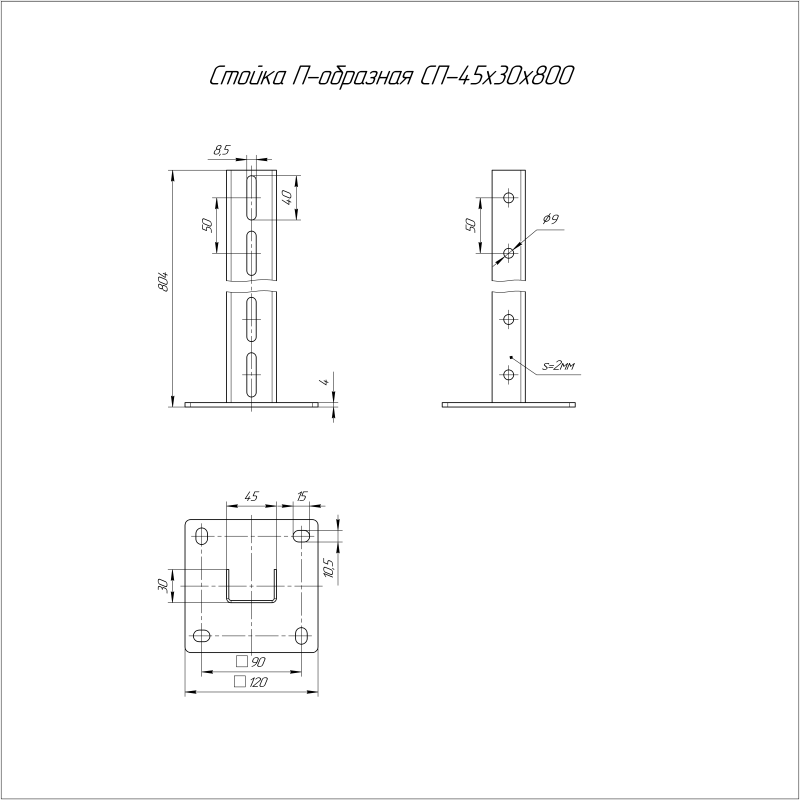 Стойка П-образная 45х30х800 СП Промрукав PR08.5120