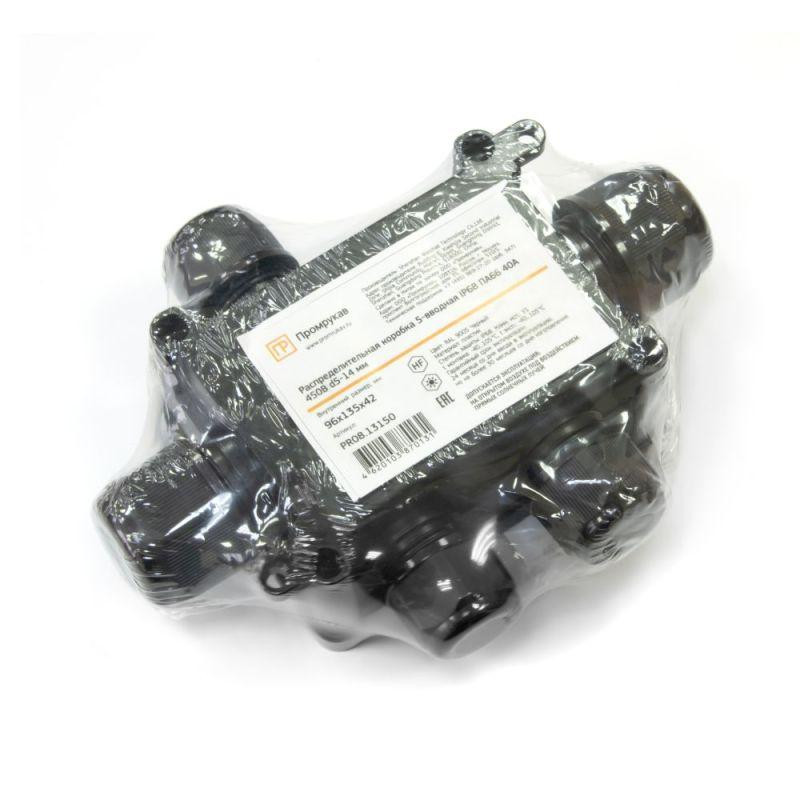 Коробка распределительная ОП 135х96х42 5-вводная IP68 ПА66 40А 450В d5-14мм черн. Промрукав PR08.13150