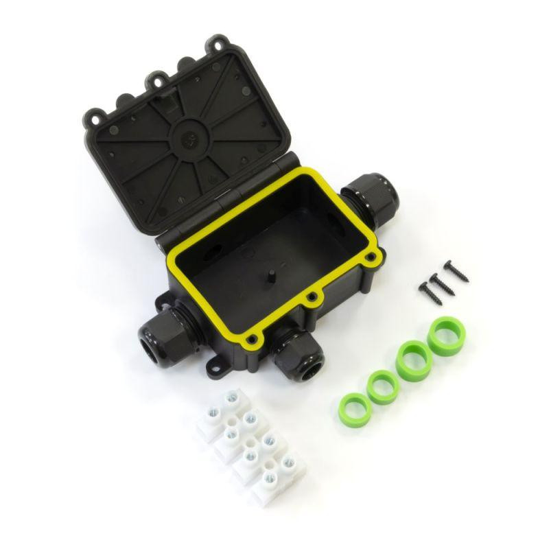 Коробка распределительная ОП 131х95х37 4-вводная IP68 ПА66 40А 450В d3.5-12мм с откидной крышкой черн. Промрукав PR08.13153