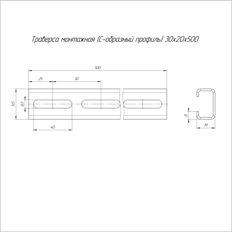 Траверса монтажная С-образ. 30х20 L500 сталь 2мм Промрукав PR16.1136