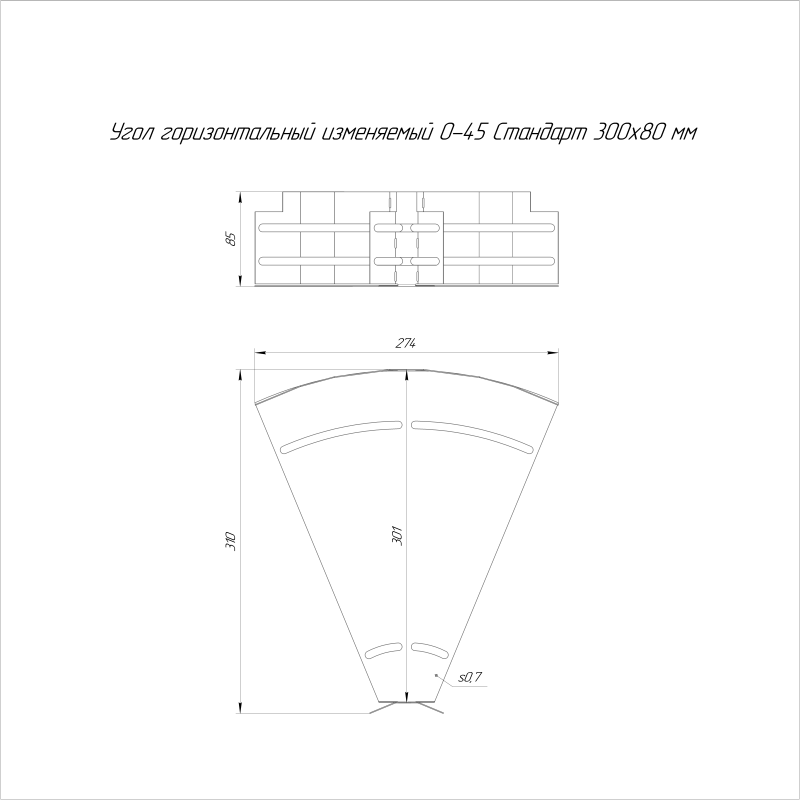 Угол для лотка горизонтальный изменяемый 0-45град. 300х800 Стандарт Промрукав PR16.0992