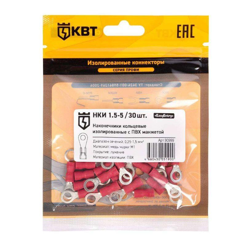 Наконечник кабельный кольцевой изолированный НКИ 1.5–5 (уп.30шт) КВТ 90999 КВТ