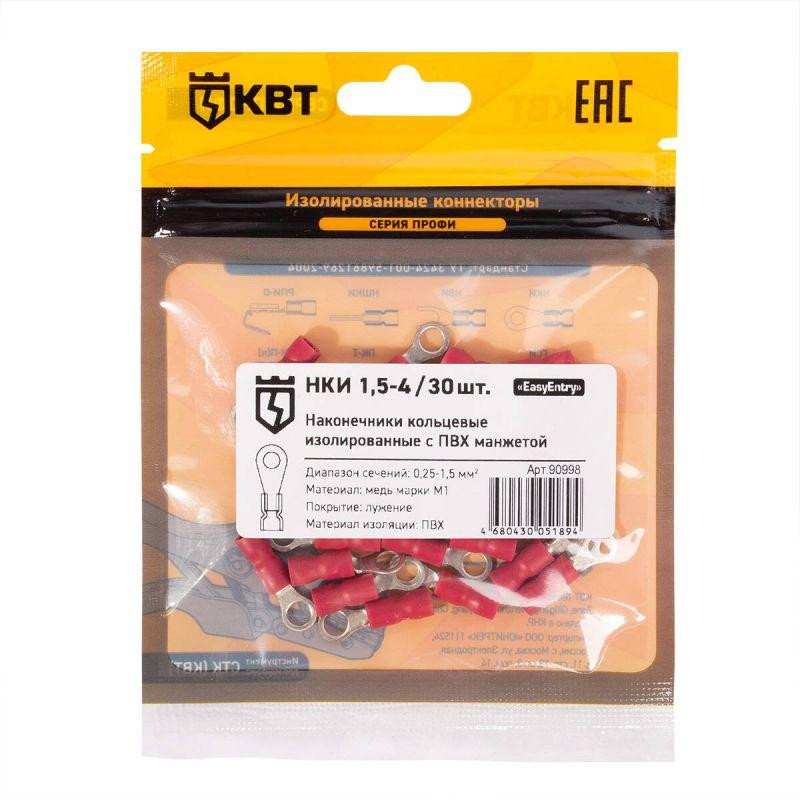 Наконечник кабельный кольцевой изолированный НКИ 1.5–4 (уп.30шт) КВТ 90998 КВТ