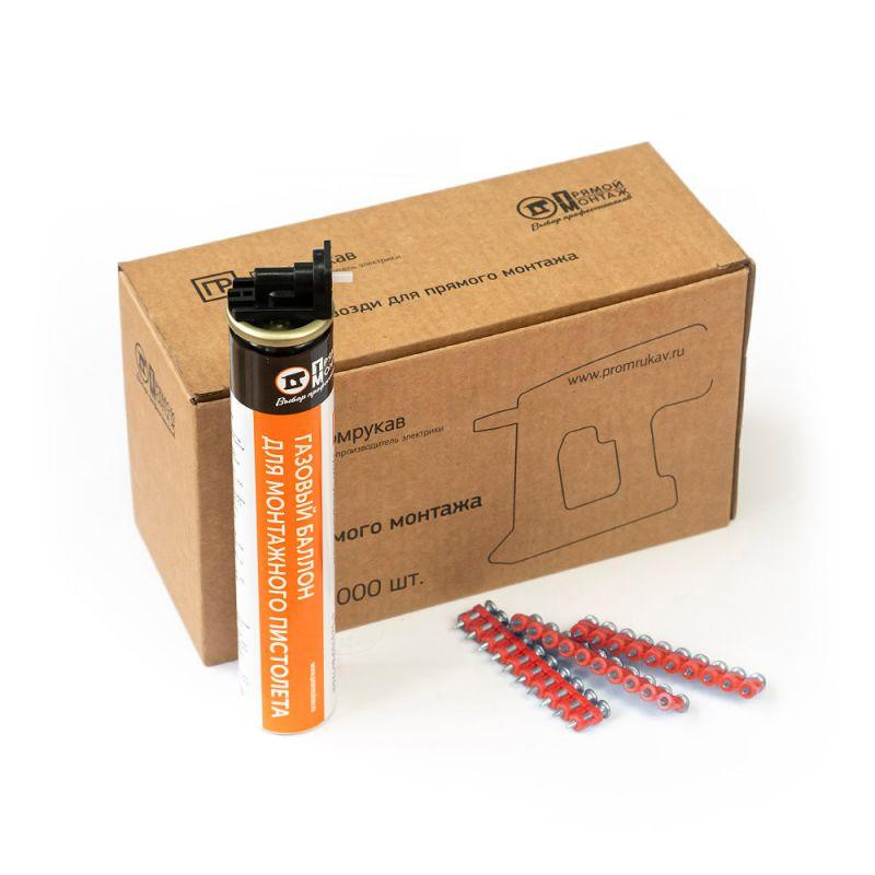 Комплект газовый баллон 165мм и гвозди для прямого монтажа 3х19мм (кованые) (уп.1000шт) Промрукав PR08.22649