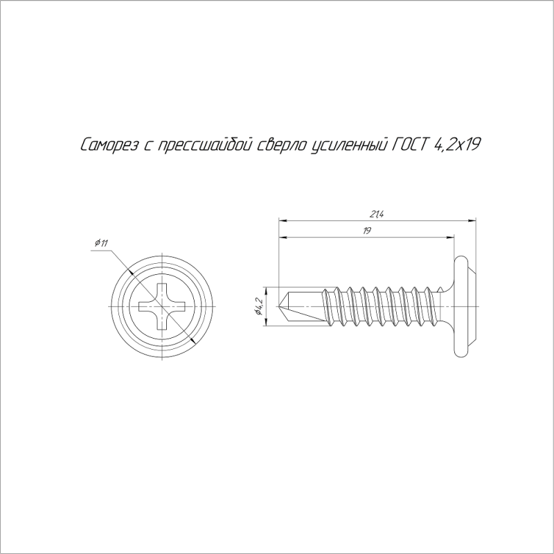 Саморез с прессшайбой сверло усиленный 4.2х19 (уп.100шт) Промрукав PR17.00561