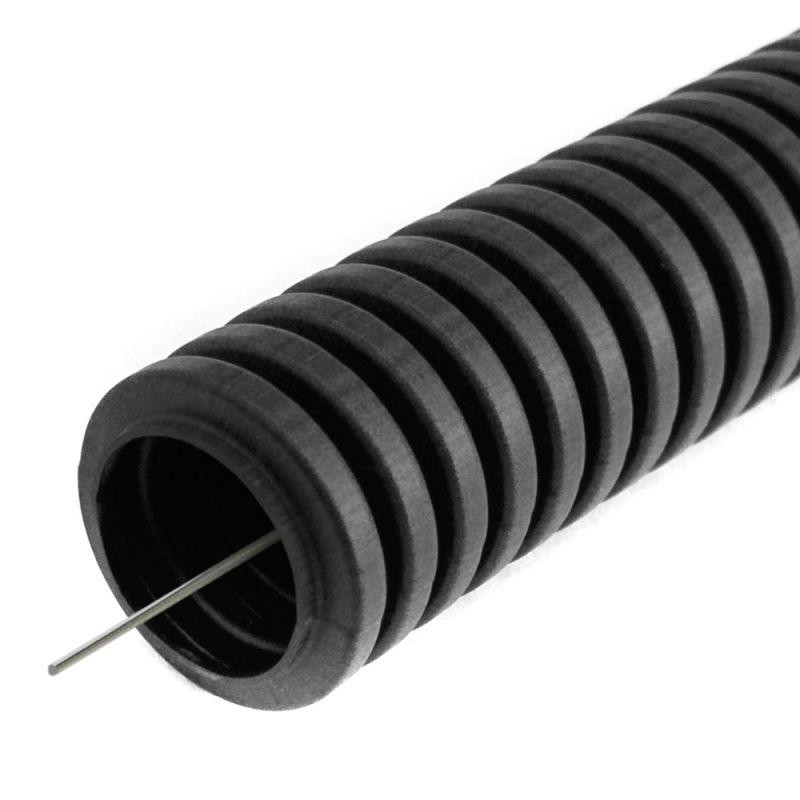 Труба гофрированная ПВХ легкая d20мм с протяжкой 350 Н черн. (уп.10м) Промрукав PR01.0145