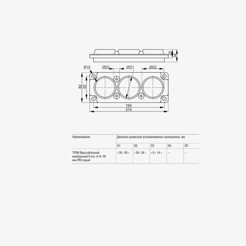 Ввод кабельный мембранный 6 отверстий d6-59мм IP65 сер. Промрукав PR08.26510