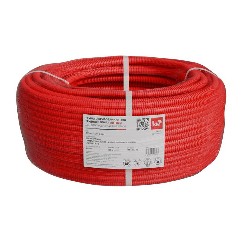 Труба гофрированная ПНД легкая d16мм с протяжкой безгалоген. трудногорючая (HFFRLS) KM-FRTG-16 (уп.100м) КМ LO62318 КМ-Профиль