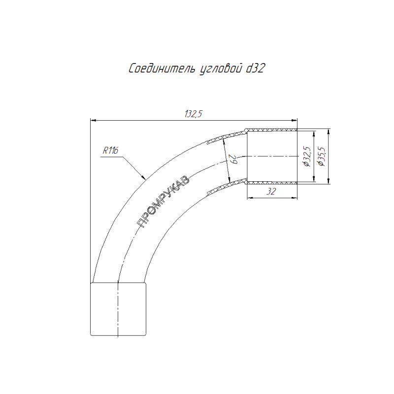 Соединитель угловой d32мм оранж. (уп.15шт) Промрукав PR13.1185