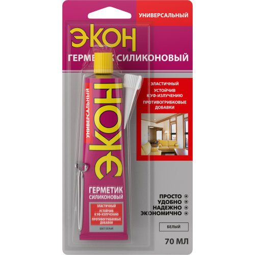 Герметик силиконовый универсальный ЭКОН 70мл на единичном блистере момент бел. Момент C0043195
