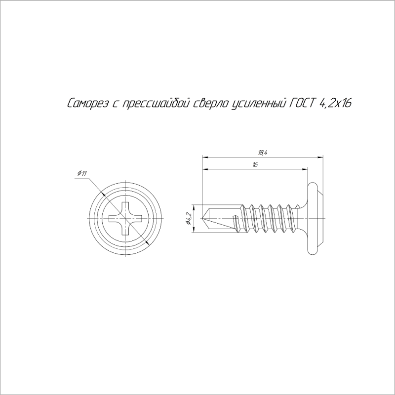 Саморез с прессшайбой сверло усиленный 4.2х16 (уп.500шт) Промрукав PR17.00330