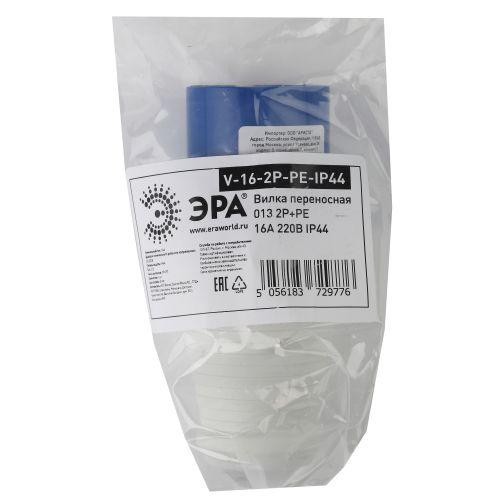 Вилка переносная 013 2Р+РЕ 16А 220В IP44 Эра Б0032849 Эра