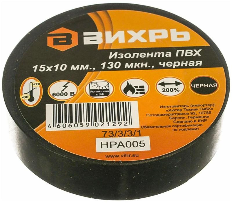Изолента (10мх15мм) черн. Вихрь 73/3/3/1 Вихрь