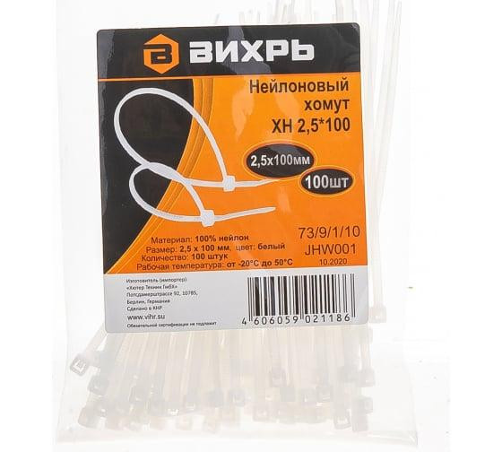 Хомут нейлоновый 2.5х100 Б (уп.100шт) Вихрь 73/9/1/10 Вихрь
